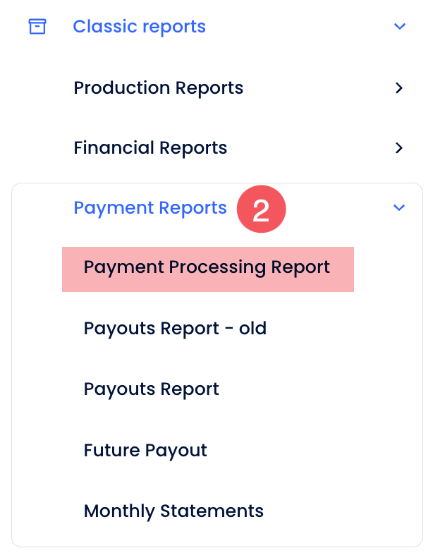 - Under Payment Reports, select Payment Processing Report.