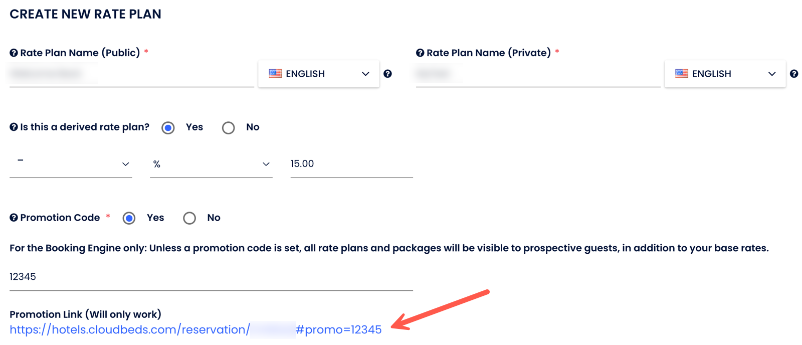 - The rate plan with promocode will only work by redirecting the user to URL containing this promocode. You may find the link with promocode on rate plan page in Cloudbeds PMS.