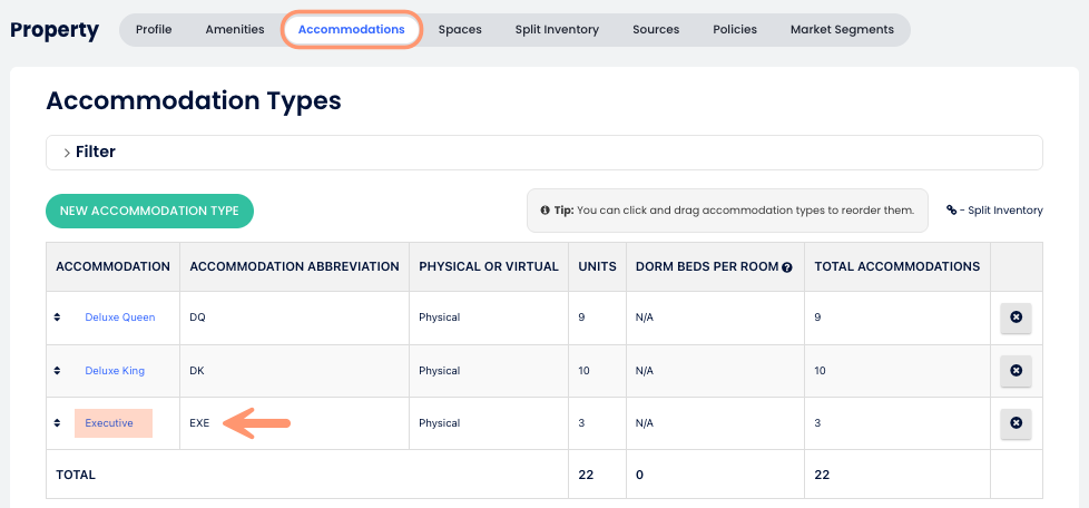 - On the Accommodations tab, check the Accommodation Abbreviation column.