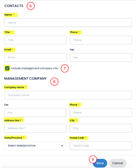 - In case the apartment is managed by a company, tick the box "Include management company info" to fill out the company details (optional).