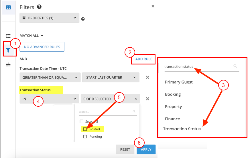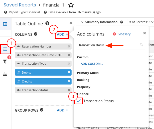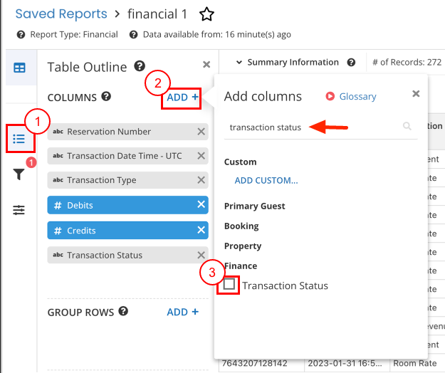 Cloudbeds Data Field (CDF) is called Transaction Status. When the Transaction Status CDF is enabled in the Table Outline, you will see a column in the report that tells you the status of the transaction: Posted or Pending (for example, room rate for future stay date).