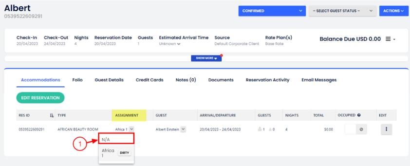 - Go to each one of the corresponding reservation(s), and select the N/A option in the Assignment column.
