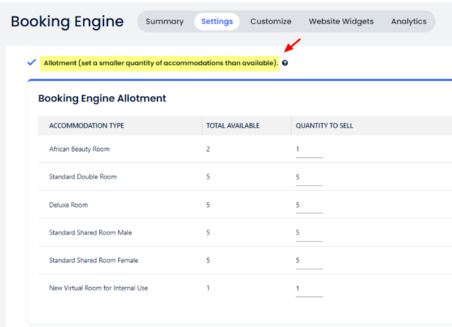 2. Booking Engine allotment page