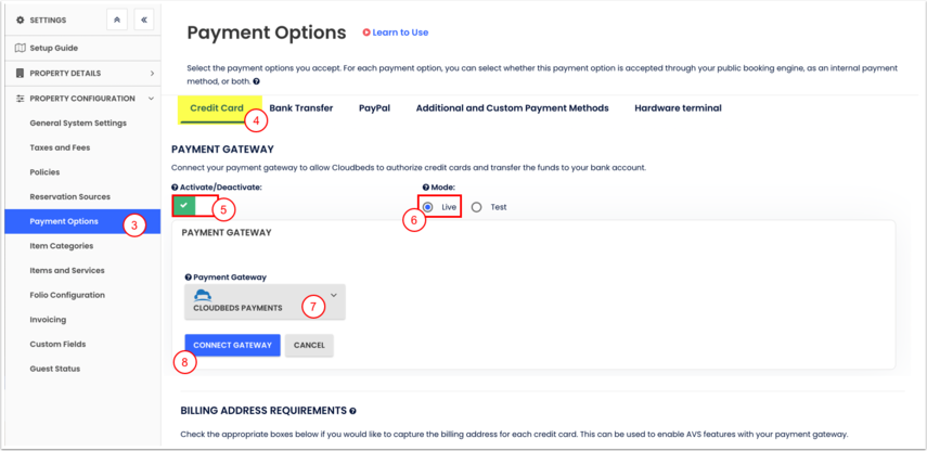 Once the Cloudbeds Payments status is showing as Connected, you can start processing your guests' payments using the gateway. Check: How to Process Payment Through Payment Gateway