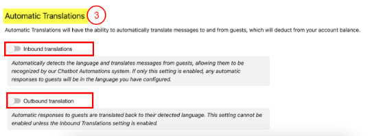 - Switch the toggles to enable Automatic Translations (inbound and outbound options as preferred).