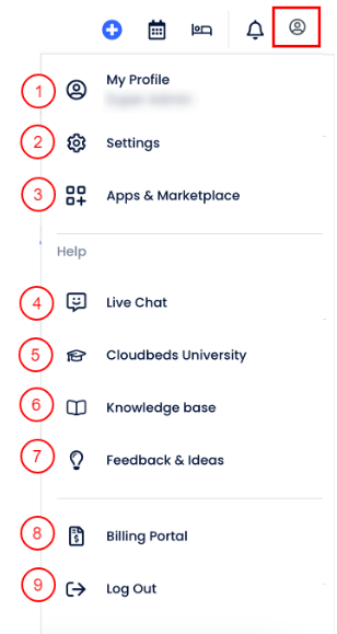 Access your Property Profile, Guests, Users and more. This page contains all the sections to successfully adjust Cloudbeds PMS to your business. |