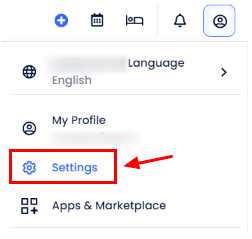 The Settings Page is nested inside the Account Menu. To access it, simply click on the Account Menu icon, and select Settings: