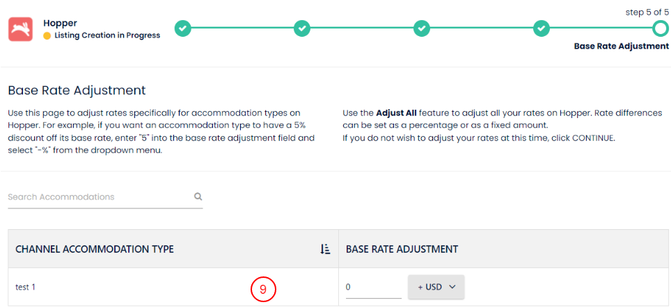 - Add Base Rate Adjustment for each room type, if needed. Click Next when completed or if you want to skip this step.