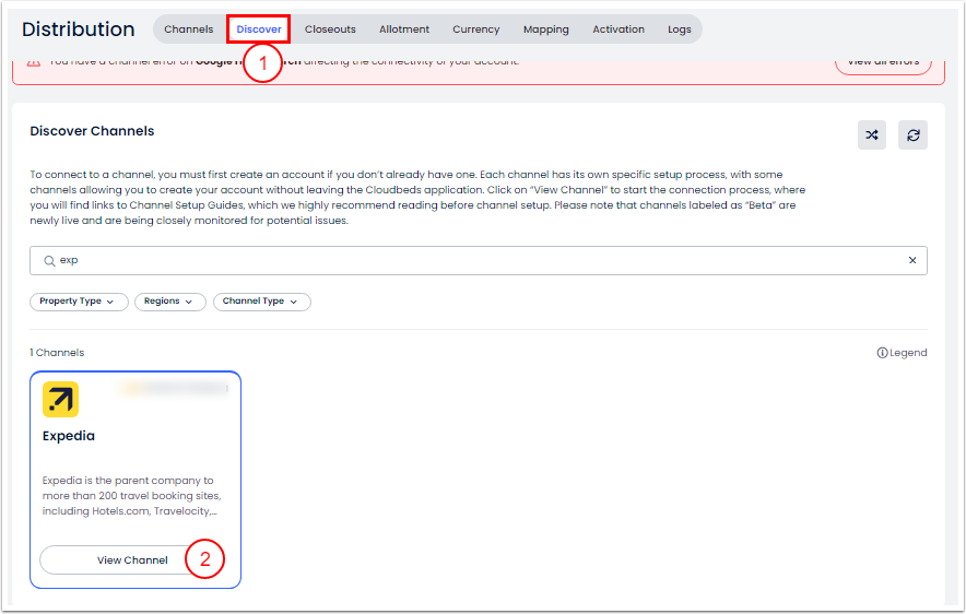 On the Distribution Channels page, Expedia should be marked as ready for mapping.