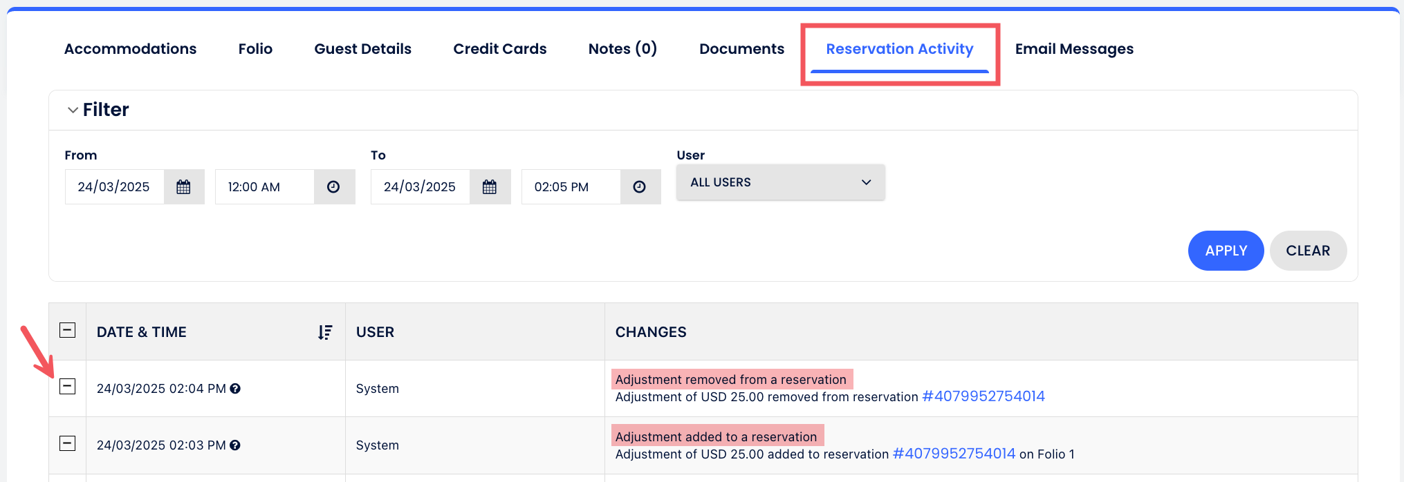 - Res #: Click the reservation number to be redirected to the guest's reservation.