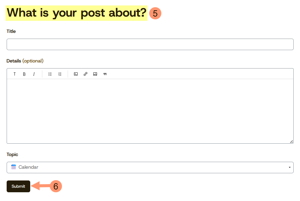 For future submissions, please access the Community to share your ideas. You can also ask general questions in this space.
