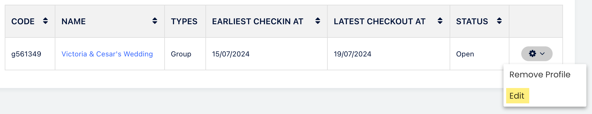Find the desired Group Profile from the Group Profile table and click the gear icon to edit its information.