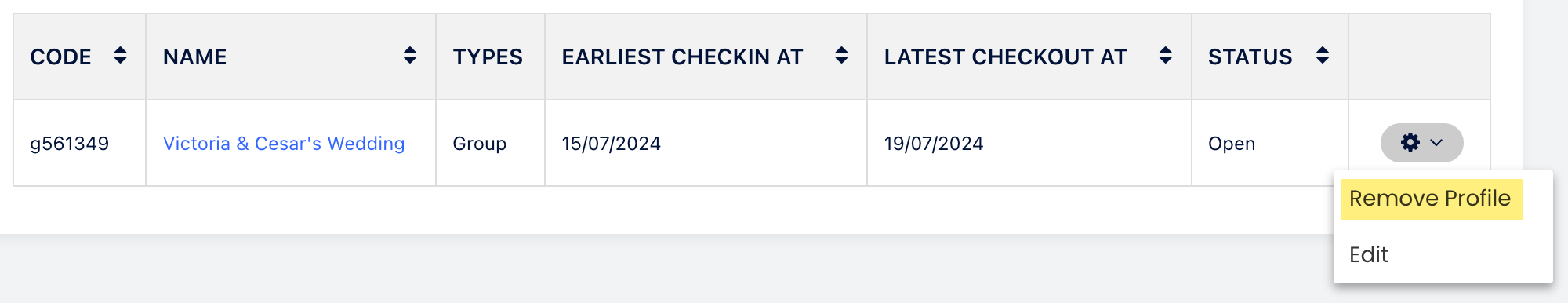 Find the desired Group Profile from the Group Profile table and click the gear icon to Remove Profile.