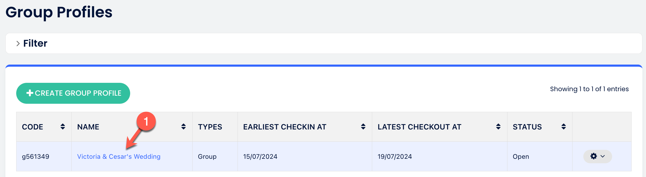 - Find the desired Group Profile from the Group Profile table and click on the hyperlinked Name to open the group profile