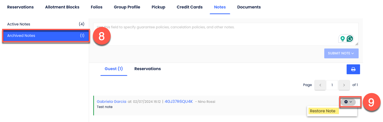 - To learn how to add, view, and archive Booking Notes, click here: Manage Reservation Notes.
