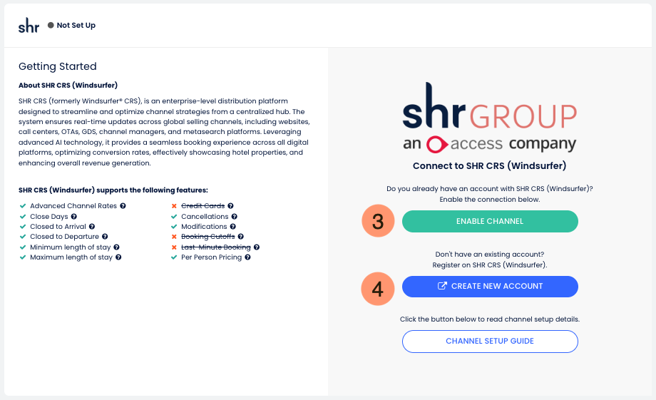 Map your rooms. Enter the SHR CRS Room Code in the Channel Accommodation column.