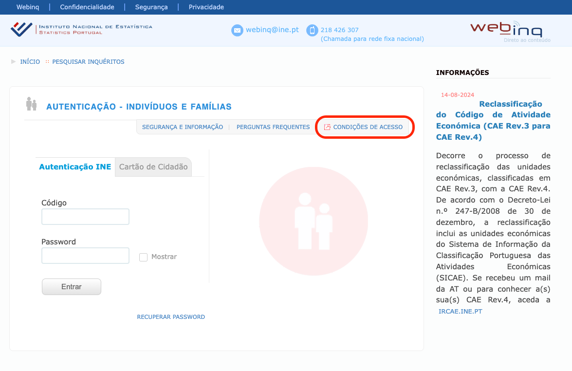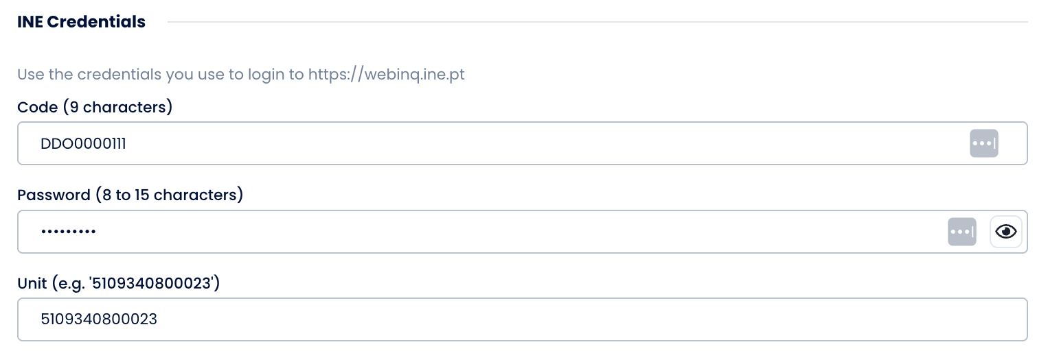 These are the same credentials you use to log in to https://webinq.ine.pt.