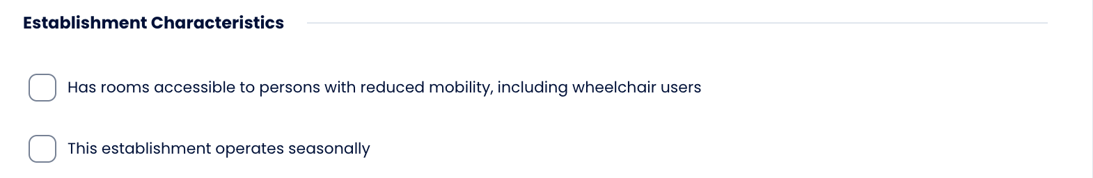 - Has rooms accessible to persons with reduced mobility, including wheelchair users — Check this box if your property includes at least one accessible room.