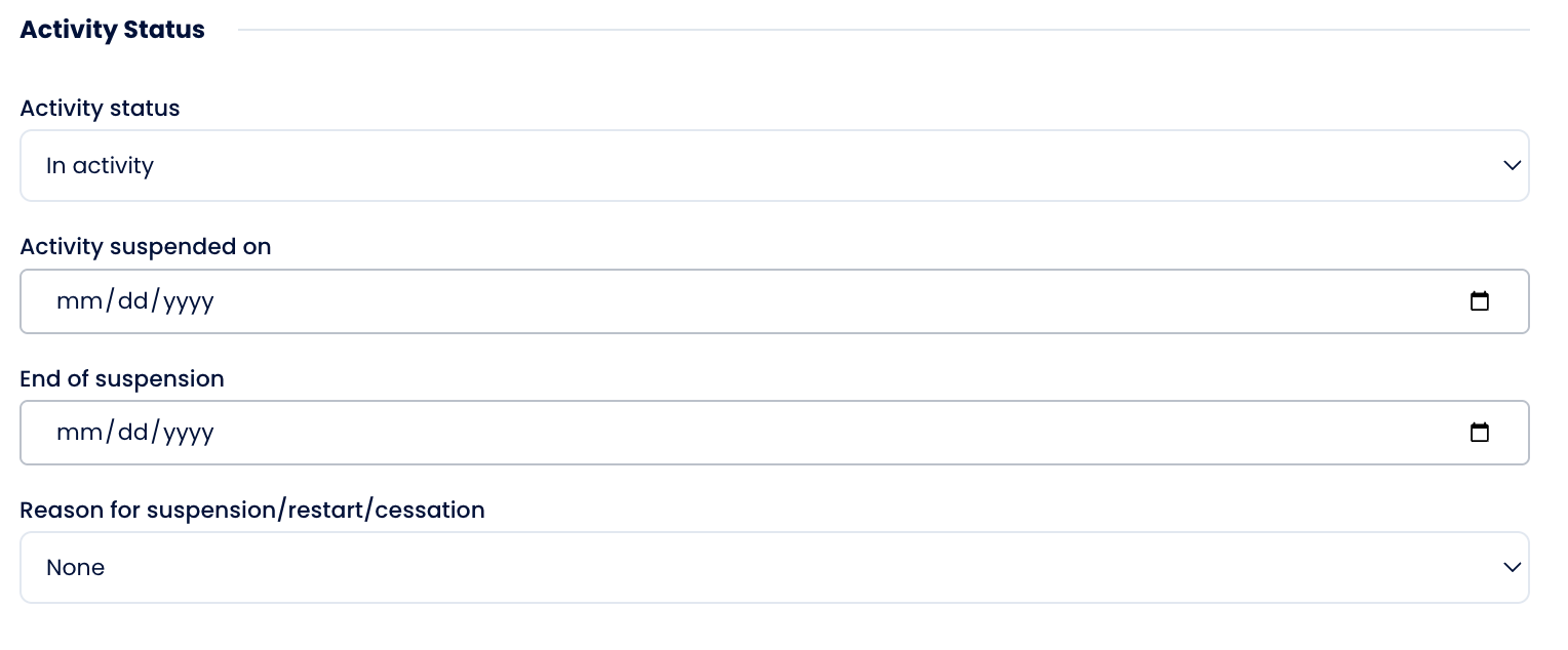 | Activity suspended on | Date when the suspension began |