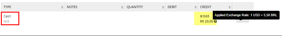 Let's suppose that you have Brazilian Reais as your Default Currency and the following transaction (R$ 20,00) was added in Dollars ($3,63):
