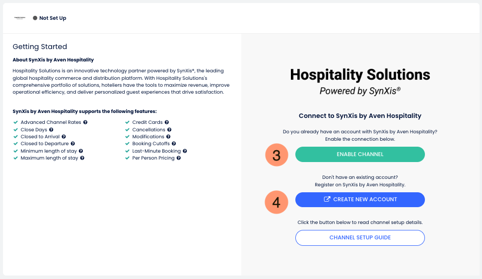 - If you have an account in SynXis by Aven Hospitality, click to Enable Channel