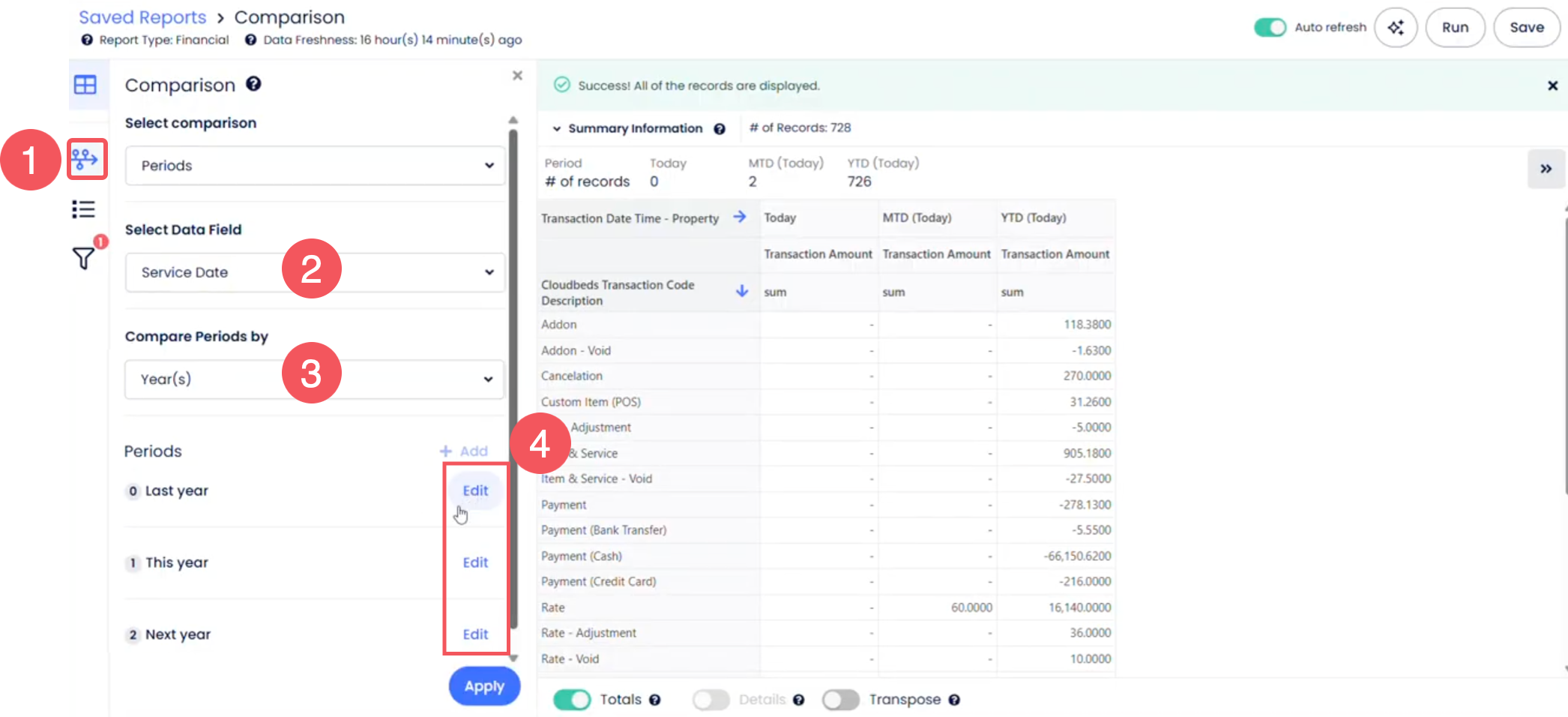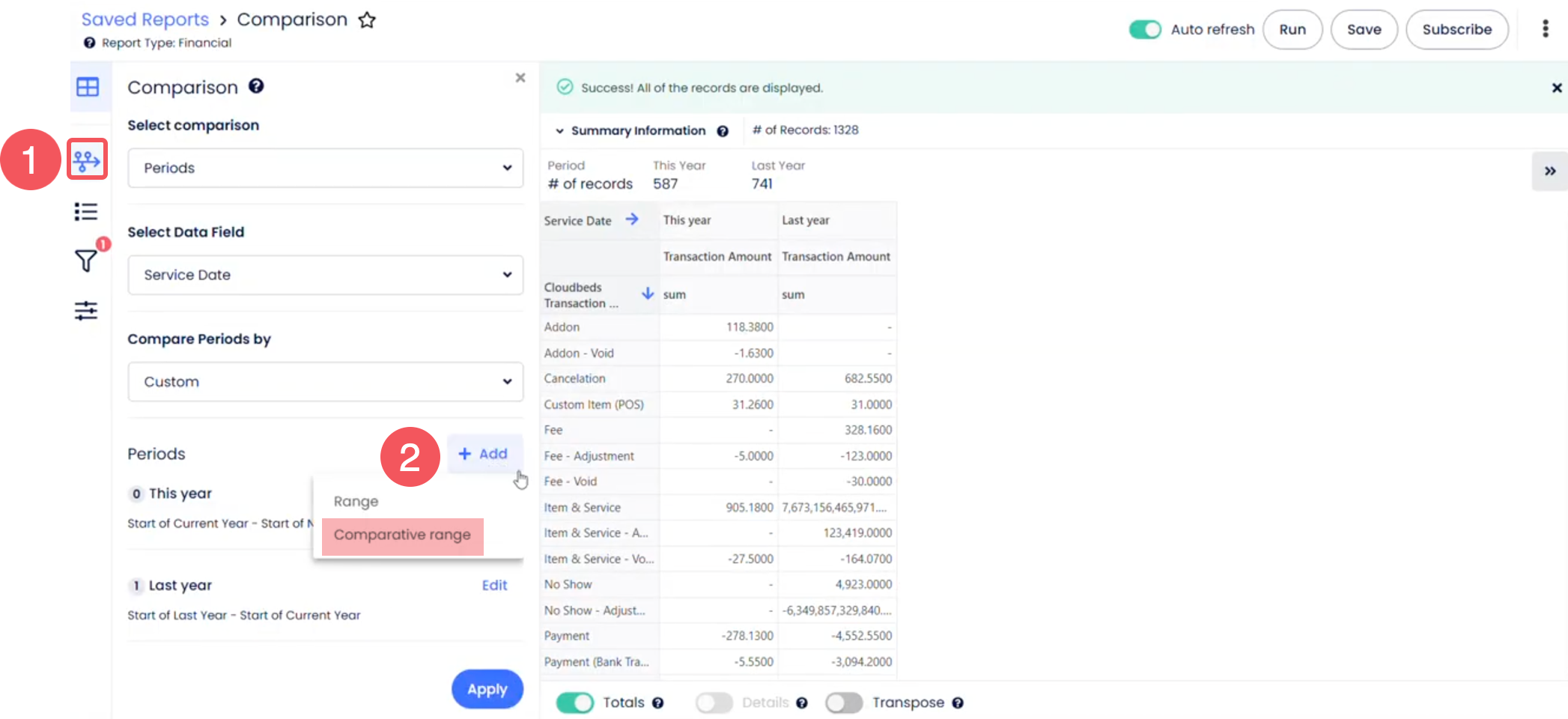 Next, define the time periods you want to compare. In this example, we will set up a year-over-year comparison.
