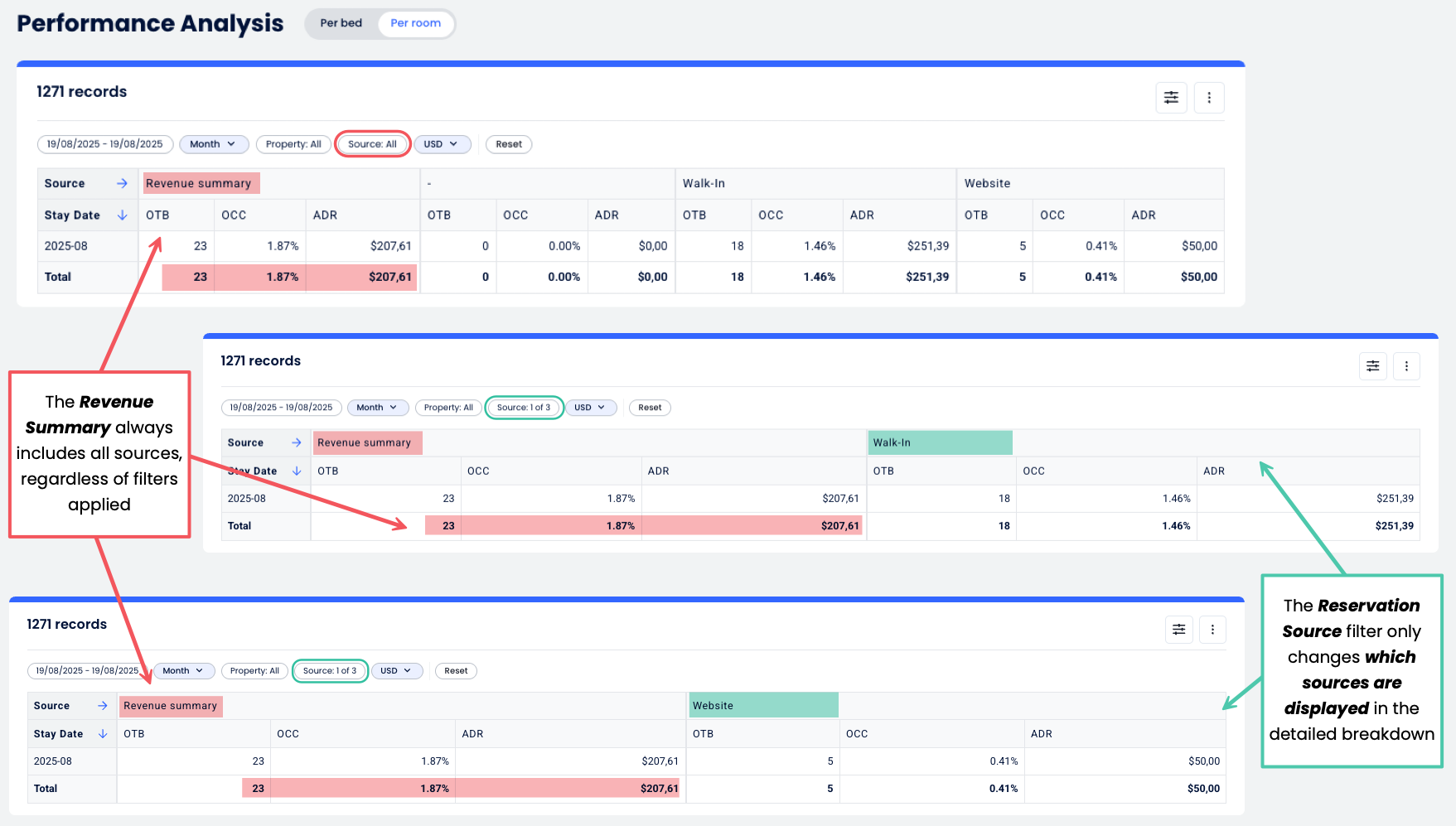 - Analyze performance by reservation source with a clear Revenue Summary.