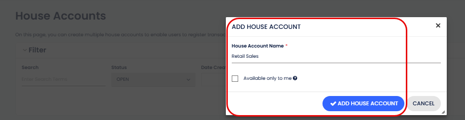 The sale will be recorded in this House Account for further reporting.