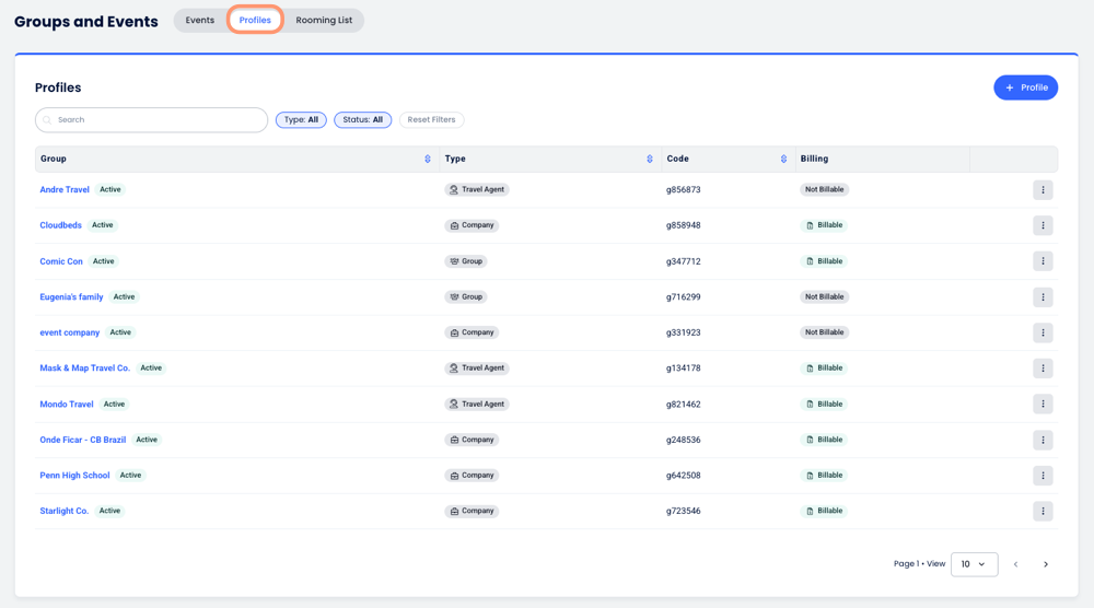 Profiles Tab: An organization-wide directory of Companies, Travel Agents, and Groups that serves as a "Single Source of Truth" shared across all your properties.