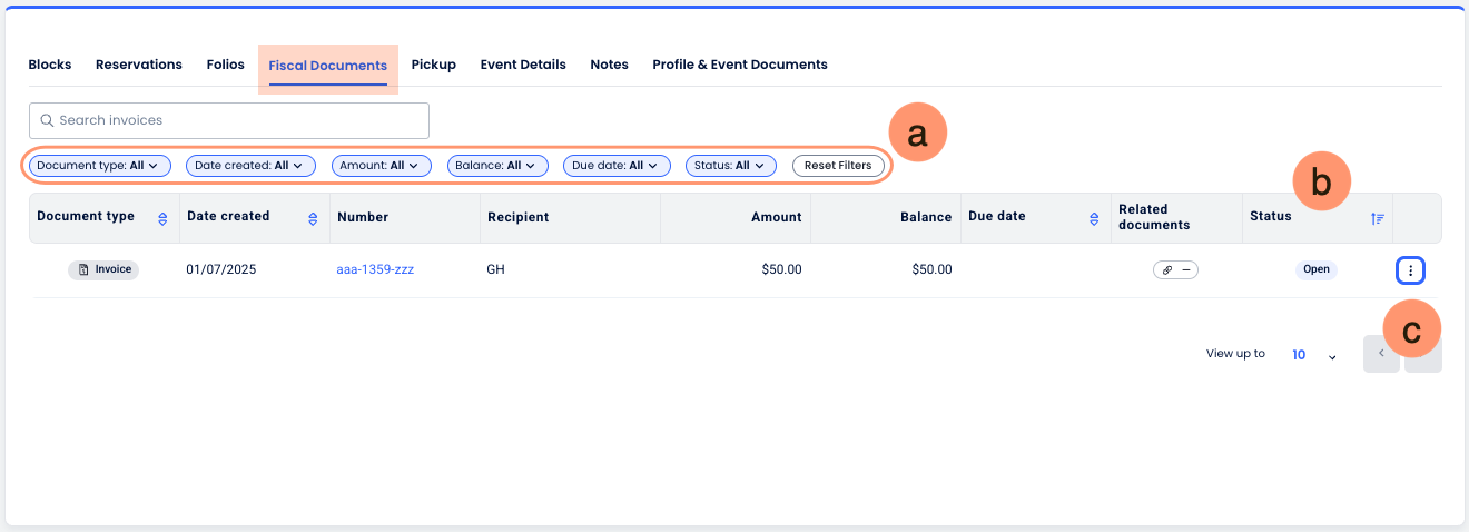 By integrating with the Cloudbeds Fiscal Document Service, this tab allows you to manage the entire lifecycle of an invoice—from initial pro forma estimates to final tax-compliant documents—while maintaining a direct link to your property's Accounts Receivable records. It supports international business by allowing documents to be generated in multiple languages and ensures that mandatory data, such as Tax IDs and legal names, are correctly attributed to the organization.
