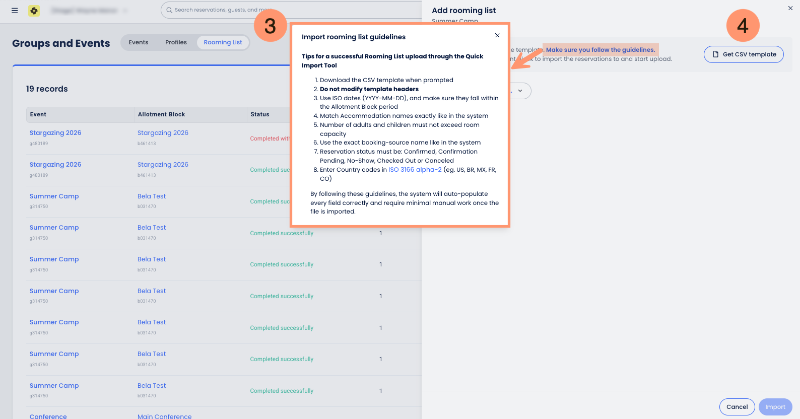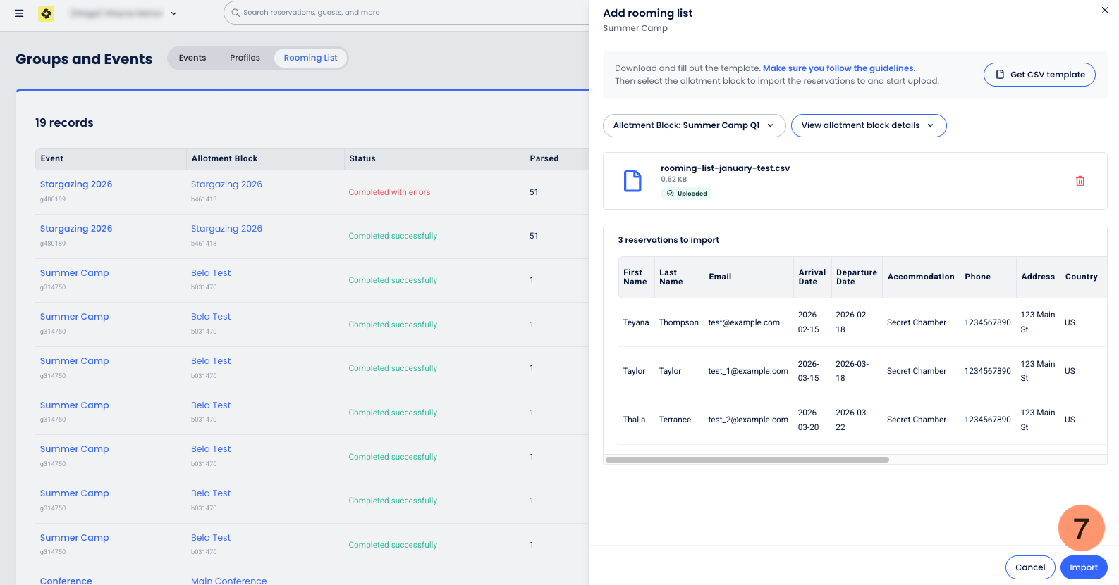 - No Inventory Validation: The system does not currently validate inventory availability during the import process. It is possible to overbook an allotment block if the list exceeds the remaining rooms.