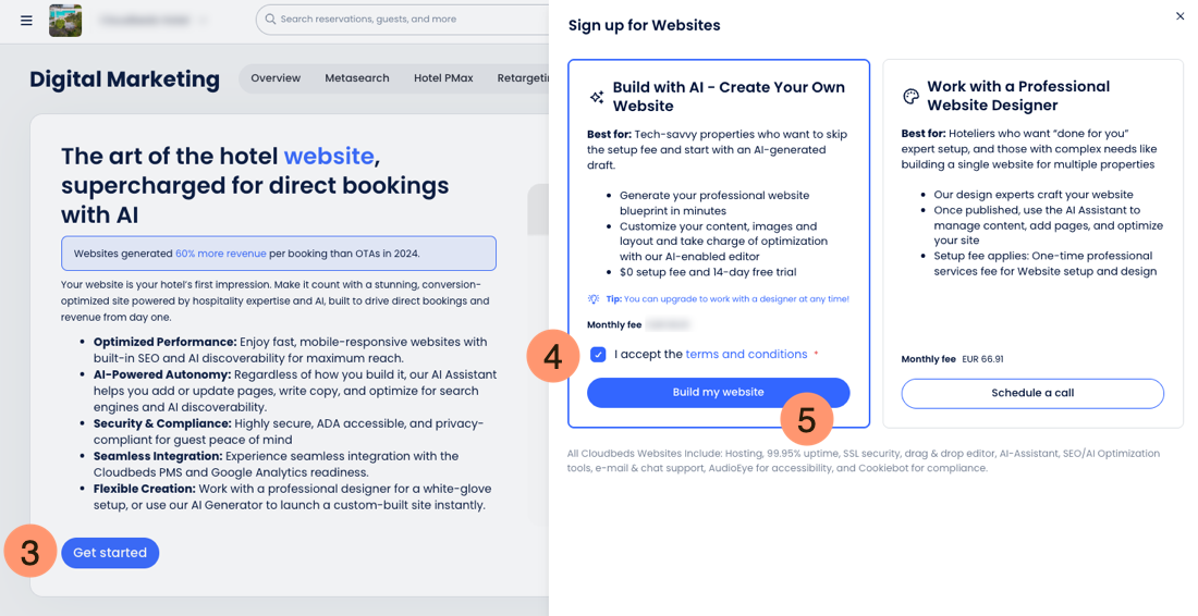 The Cloudbeds Website builder offers an AI-powered "Do It Yourself" solution that allows you to instantly create your own professional, high-conversion website using the data already stored in your Cloudbeds PMS.