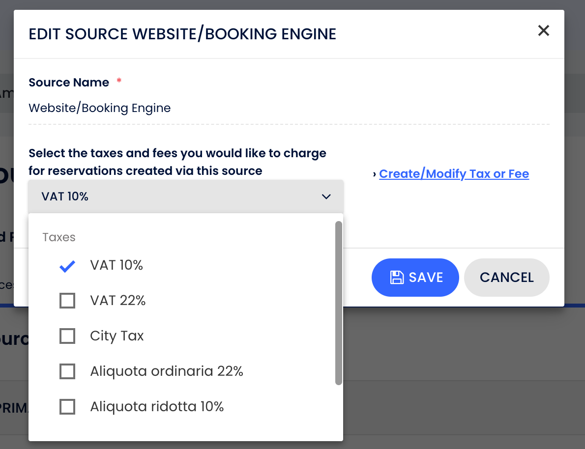 | Tax | Aliquota ridotta 10% | Inclusive | VAT (IVA) | Items; Reservations | Percentage of total amount | 10% | No |