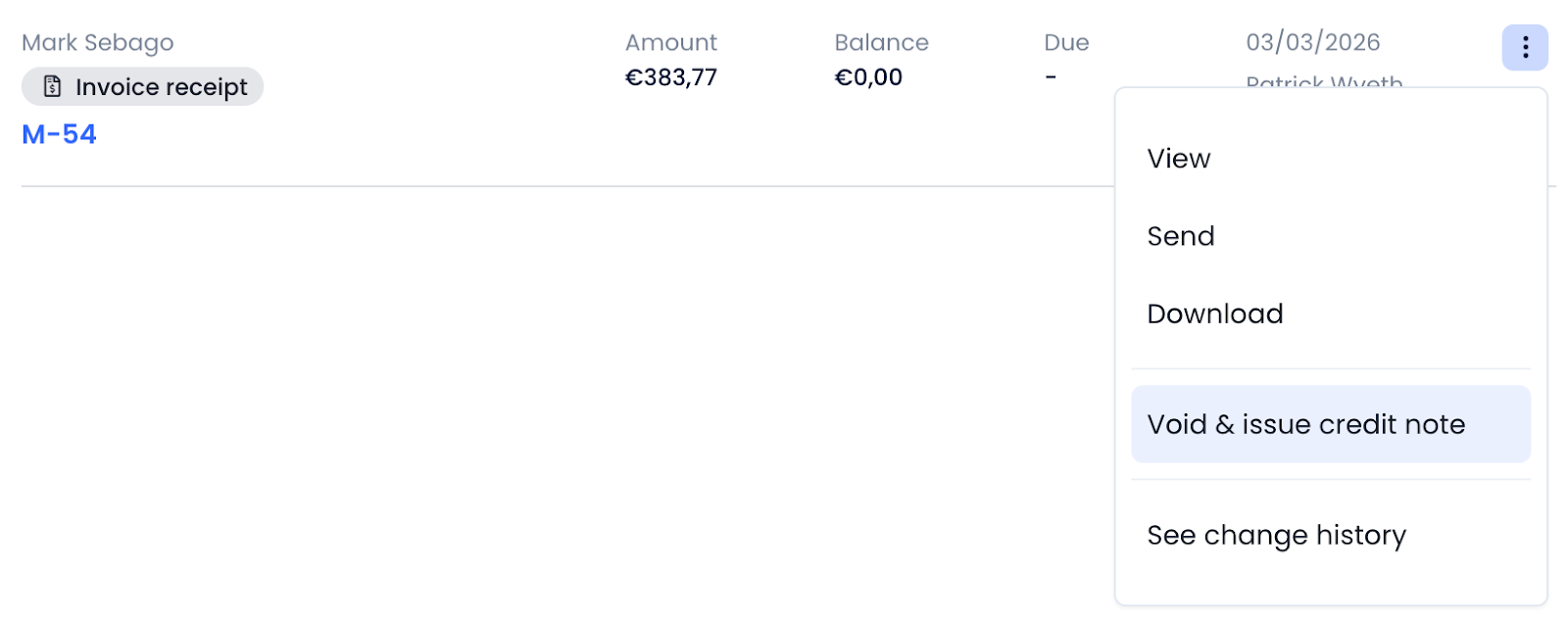 All the same document actions are available here - including the ability to void and issue a Credit Note.