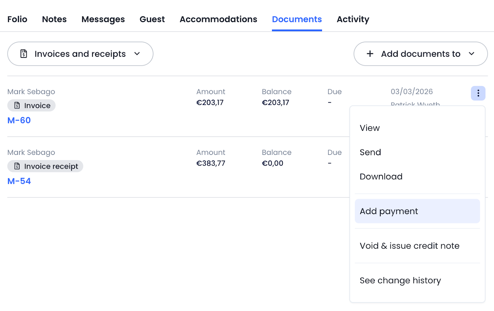- Open the invoice from the Documents tab.