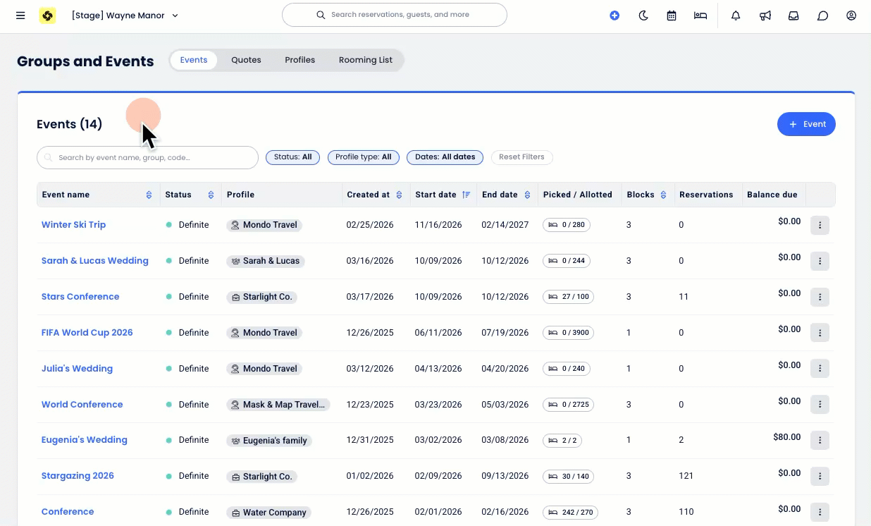 - Module Scope: Quotes are exclusively supported within the new Groups & Events module. They are unavailable for legacy Groups or individual reservations.