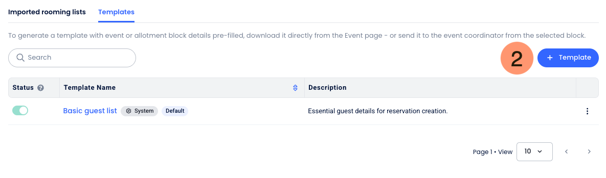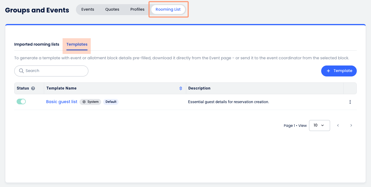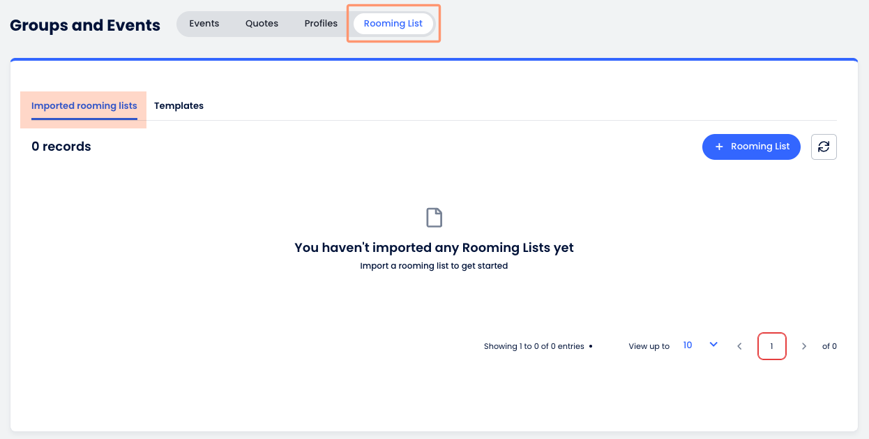 - Select Imported rooming lists to view existing lists or Templates to manage your import formats.
