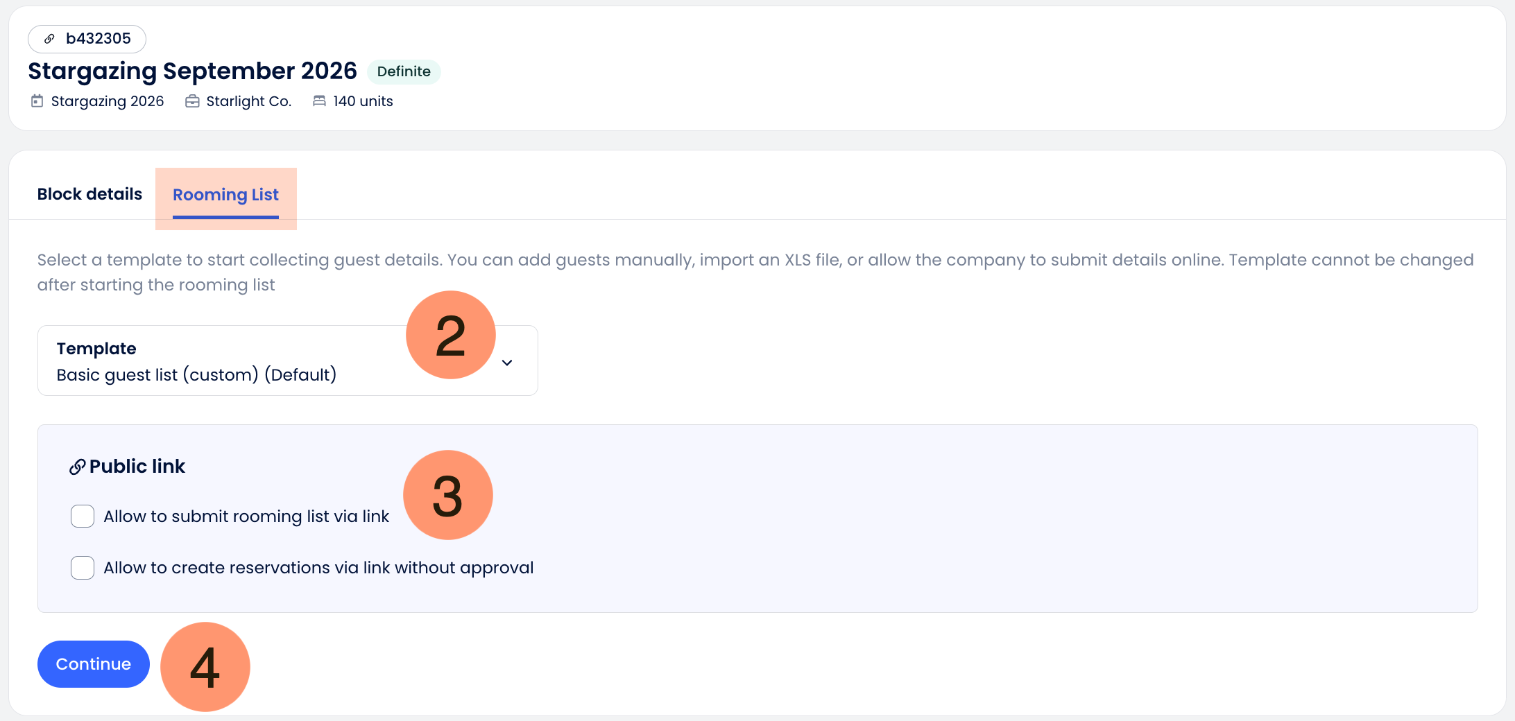 If you did not enable the link during the initial rooming list setup, you can do so at any time.