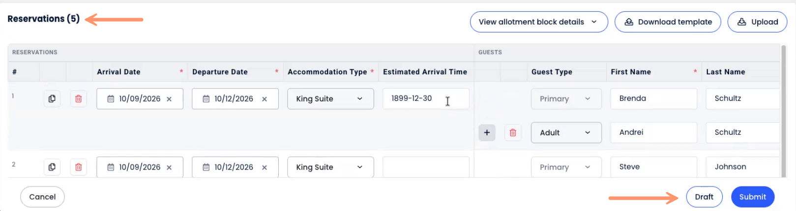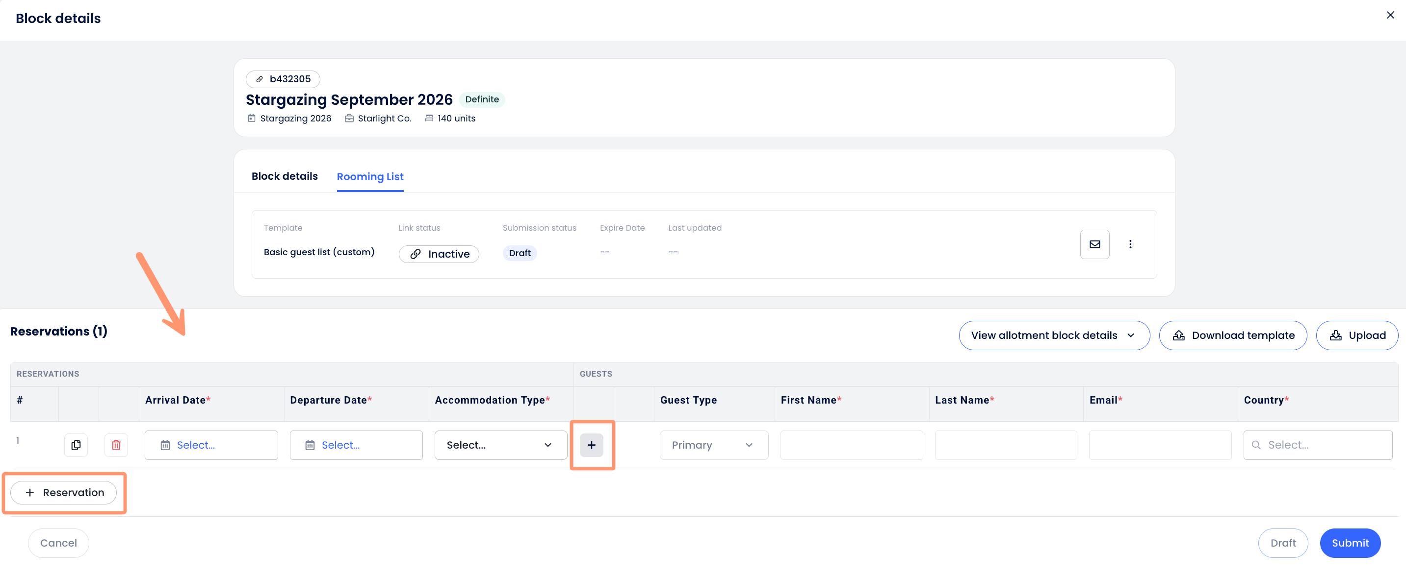 - Save as draft: Use this option if you are still reviewing or waiting for additional guest details. The rooming list remains editable.