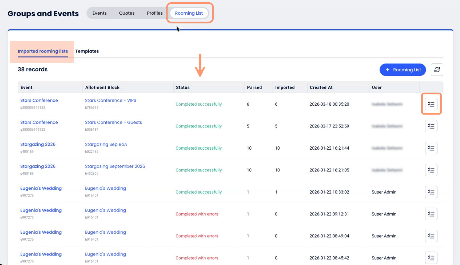 Need to audit your list? For instructions on how to view, filter, or delete these import records after they are completed, please refer to our guide: Managing Rooming List Records.