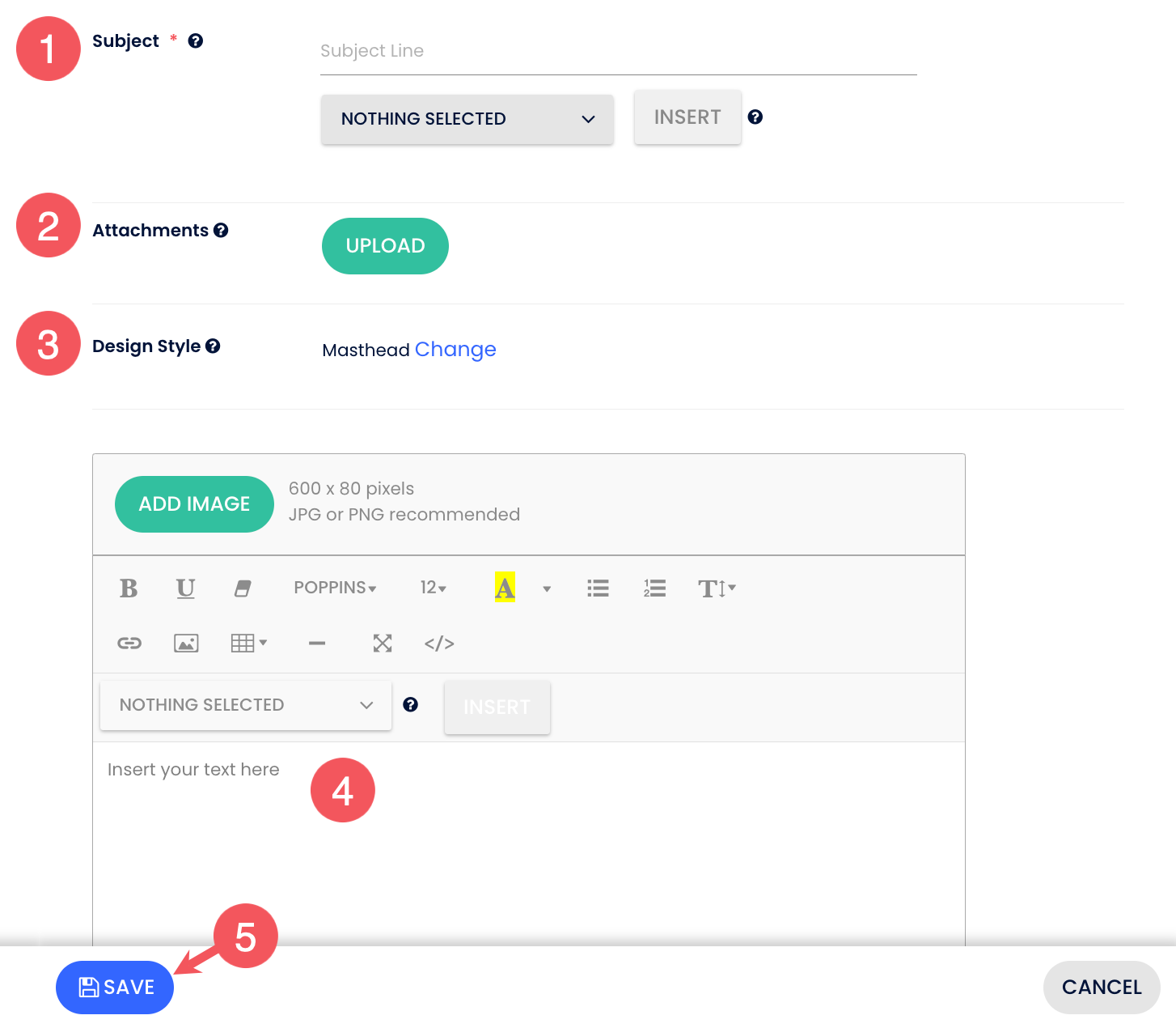 - Attachments - Upload any attachments you would like to be included whenever this email template is sent