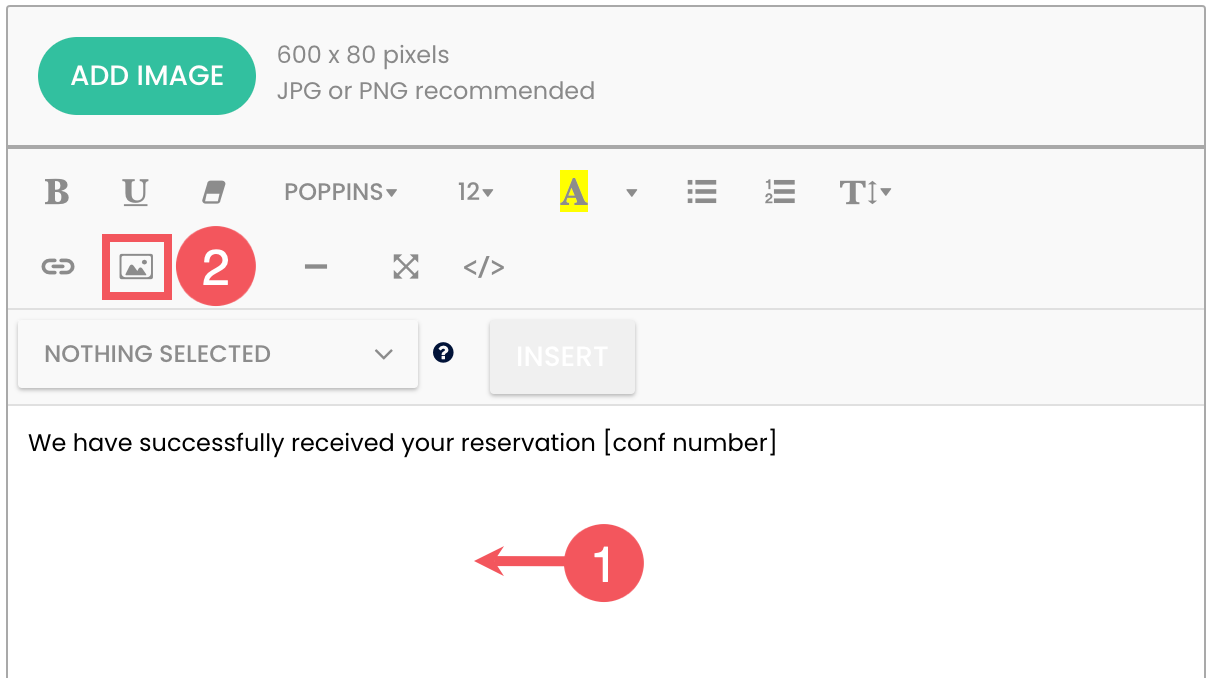- Follow the steps to Edit your email template to choose the location inside of text, and put your cursor where the image should be inserted