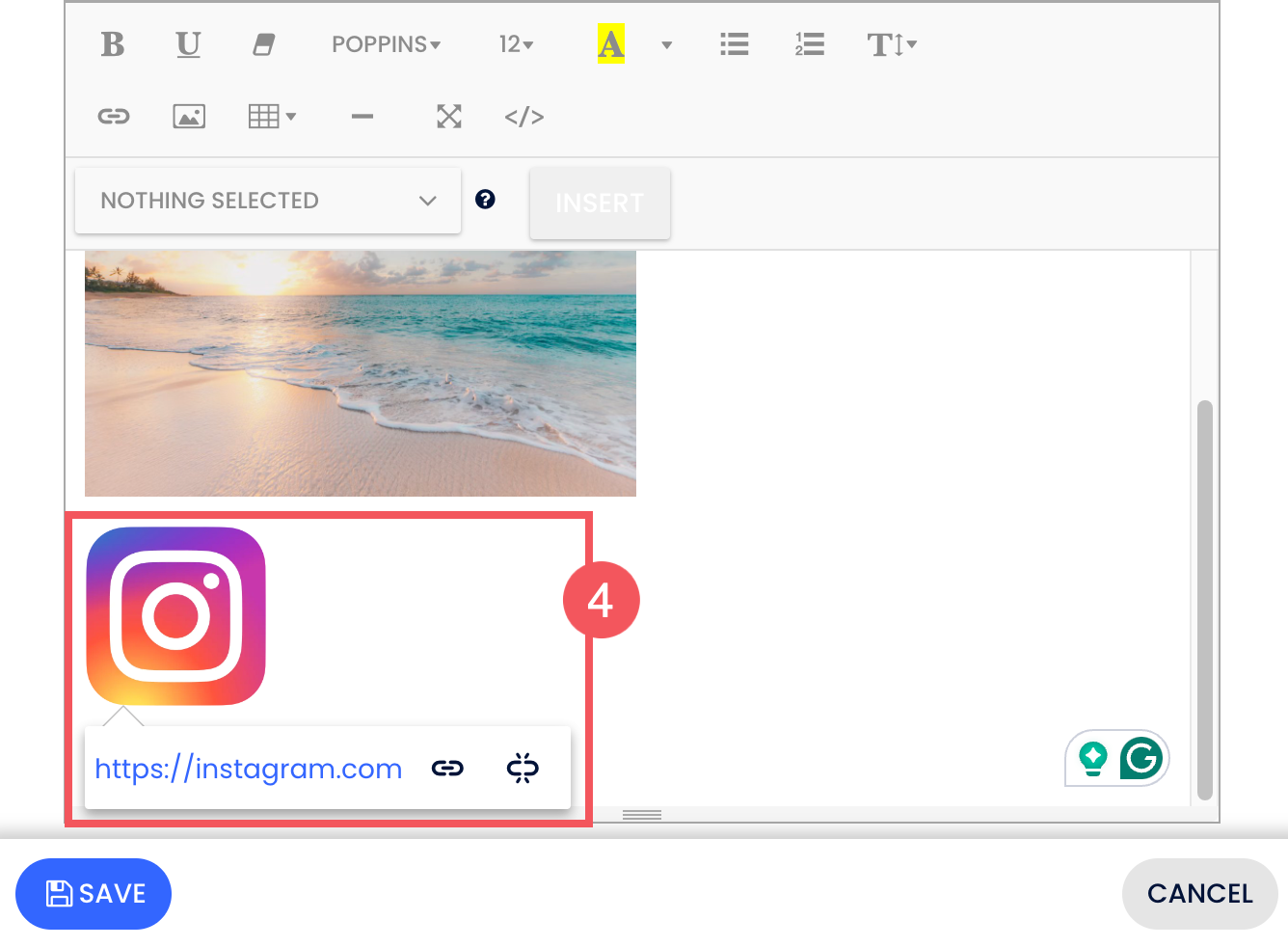 Before getting started, follow the steps to Host an image online and upload the preferred Social Media (Instagram, Facebook, etc) icon image.