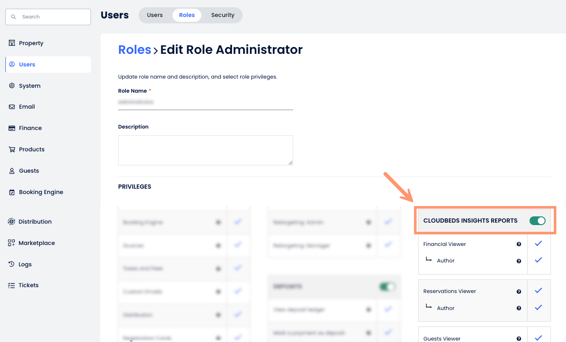 By default, the property owner has access to Cloudbeds Insight. Other users must be granted permission within Roles. Learn more: Roles and Permissions.