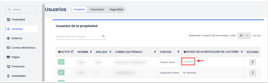 Para proceder con la transferencia de titularidad, el usuario recién creado debe tener el estado de cuenta como Verificado como se muestra a continuación. Si no está verificado, no es posible proceder con la transferencia de titularidad.