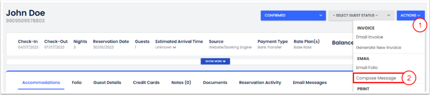 Puedes enviar correos electrónicos a tus huéspedes desde la página de la reserva usando la opción Redactar mensaje. Este artículo te mostrará guiará por los pasos para redactar y enviar mensajes a tus huéspedes en el PMS de Cloudbeds.