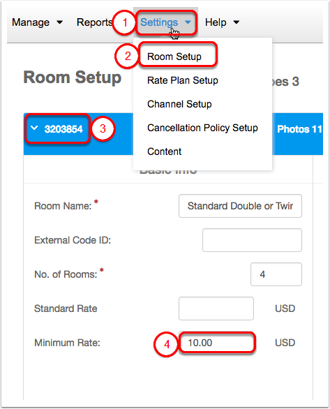- Asegurarte de que no haya tarifas base de ninguno de los tipos de habitación en Cloudbeds PMS que sean inferiores a la Minimum Rate en Priceline/Agoda; si las hay, aumenta las tarifas en Cloudbeds PMS. Sigue las instrucciones aquí: Cómo agregar/editar tarifas base.