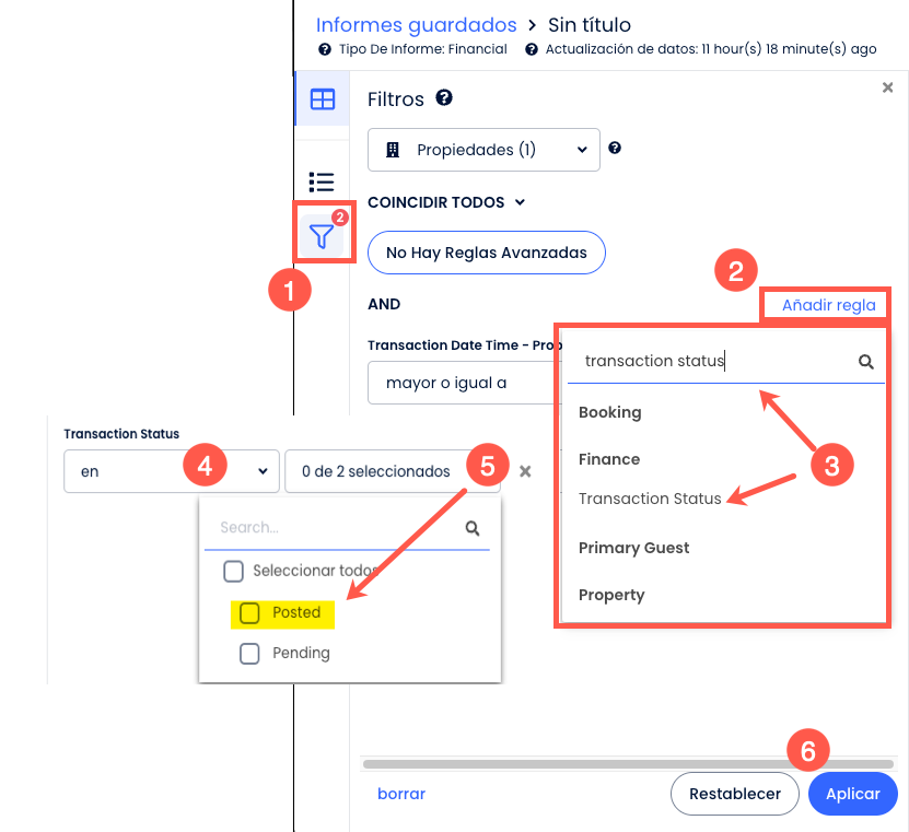 En la siguiente actualización, las transacciones pendientes estarán disponibles en el informe. Si no quieres agregar este tipo de transacciones al informe, usa los filtros para evitar errores. Selecciona una de las siguientes opciones: