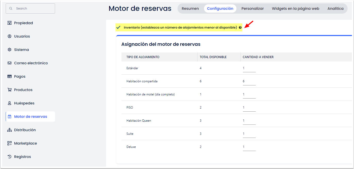 - Asignación del motor de reservas: para cerrar la disponibilidad de habitaciones en tu Motor de reservas.