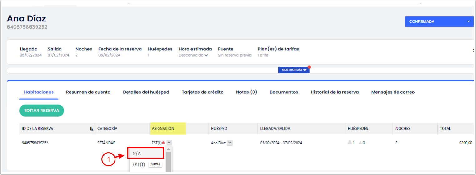 - Ve a cada una de las reservas correspondientes y selecciona la opción N/A en la columna Asignación.